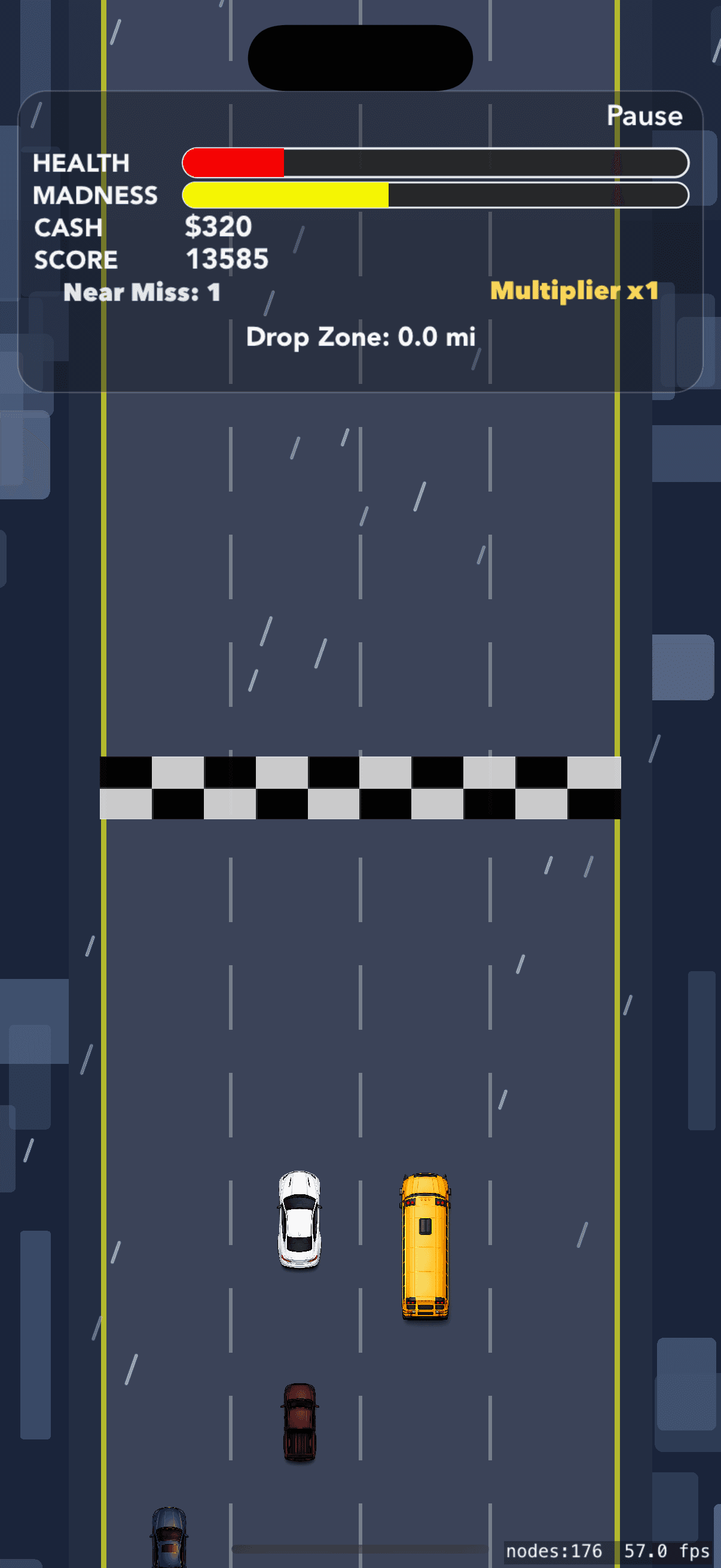 A fast-paced mission and survivor based mobile game developed for iOS. Features arcade style top down driving, creating a fun race to survive experience where success leads to rewards and car unlocks and improvements.